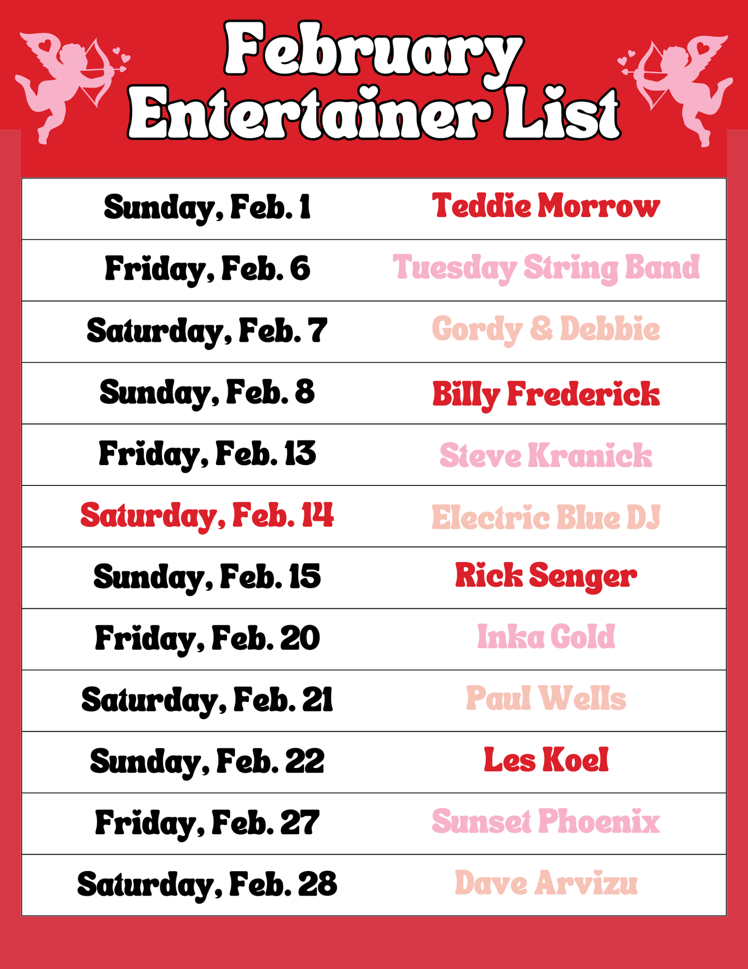 Bring your family and friends to enjoy our wonderful lineup of entertainers! You can find our entertainers performing at our Restaurant in B-Row!